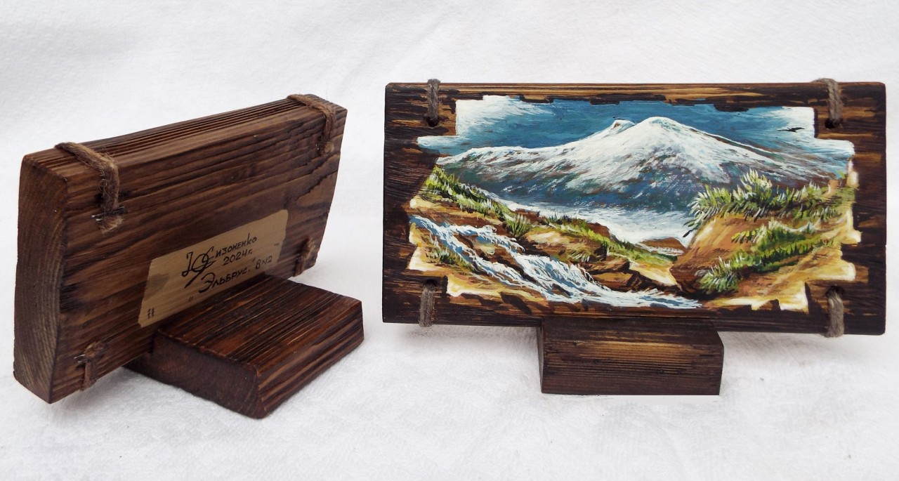Авторская работа,оригинал.Доска на подставке,масло,браширование,матовый лак.