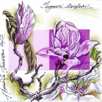 Авторский рисунок с натуры цветущей ветки розовой магнолии в конце цветения. Прощальная красота...