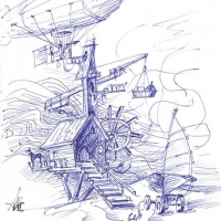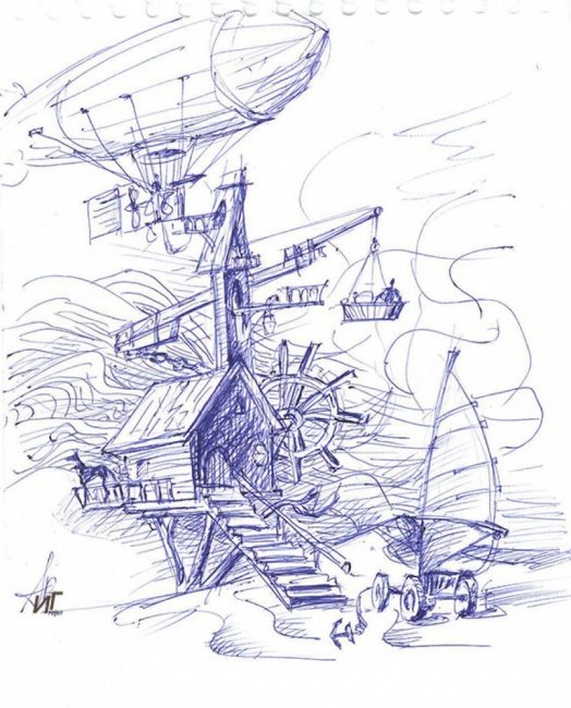 Первая. вид со спины. Старый седой человек раскинув руки стоит на вершине горы. Волосы его развиваются, он медленно рассыпается в прах. вторая. начало прошлого века. Несколько ...
