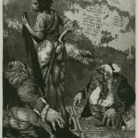 Первая. вид со спины. Старый седой человек раскинув руки стоит на вершине горы. Волосы его развиваются, он медленно рассыпается в прах. вторая. начало прошлого века. Несколько ...