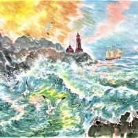 акварель, маяк, море, маринистика, чайки, продается копия-500 руб-А-3; оригинал по договорной цене, принимается заказ заказчика на изображение моря