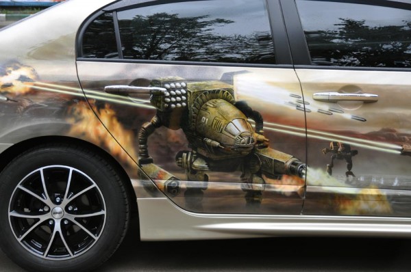 Художник-аэрограф, как и любой живописец, имеет дело с набором красок, вот только вместо кисти у него – специальная ручка-аэрограф, распыляющий цветную автоэмаль. Сочетая оттенки, нанося их тонкими слоями, профессиональный художник достигает совершенно потрясающего реалистичного изображения, подчас сравнимого только с фотографией. Но, по-настоящему красивая аэрография – это не только качество рисунка, но и его уместность, сочетаемость с дизайном автомобиля.