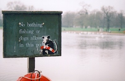 Не удивительно, что именно ей посвящено несколько десятков оригинальных трафаретов, с помощью которых Banksy выражает как своё отношение к системе, так и просто улыбается каким-то забавным моментам в реалии окружающей жизни.