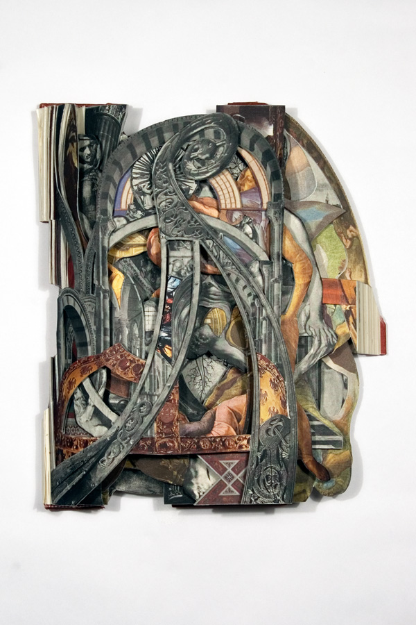 Всё, что нужно этому скульптору для работы – книги, набор хирургических инструментов, акриловый лак и клей пва, а результаты его «операций» напоминают архитектурные проекты замысловатых форм.