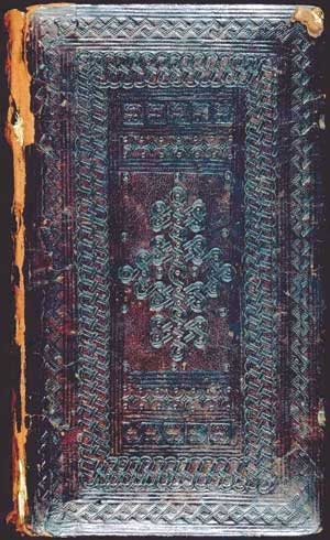 Назначение такой обложки, однако, было вполне прагматичным: она защищала книгу от возможного разрушения и … разглаживала страницы. Поскольку пергамент, как и любая кожа, имеет свойство не только темнеть с годами, но и скукоживаться по краям, то обложка носила функцию своеобразного пресса, не позволяющего деформироваться страницам.