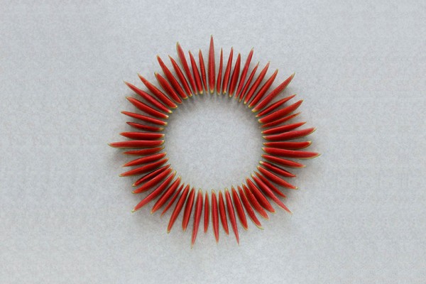 Неизменным остаётся оно: так же, как и в случае с нарезкой из фруктов, он не использует ни графические редакторы, ни какие-либо особые приспособления, просто нарезая фрагменты объектов, собирая из них свои удивительные узоры, которые то похожи на роспись по ткани, то на многоярусные геометрические конструкции из кубиков.