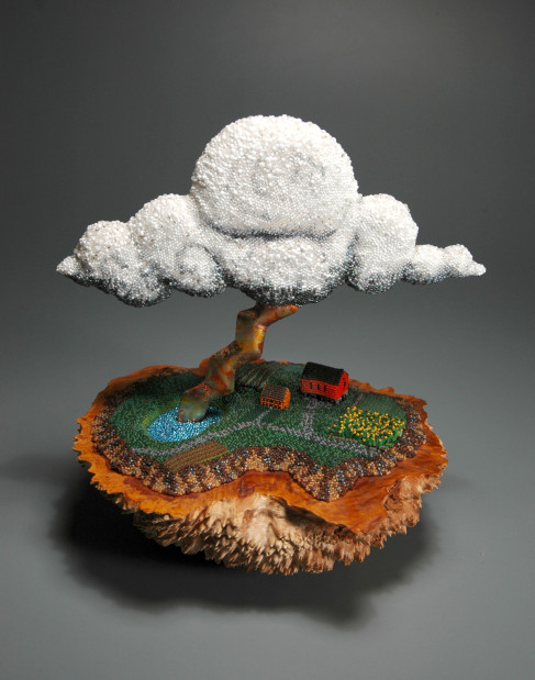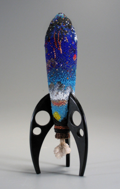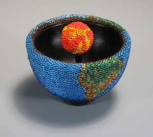 Заварные чайники из бисера Григсби по яркости и использованию материала – бисера - можно сравнить со скульптурой Уичоли (Huichol) , но есть и существенное различие. Индейцы свои скульптуры оклеивают бисером, а Лесли свои заварные чайники бисером оплетает, нанизывая каждую бусинку на тонкую, но крепкую нить.