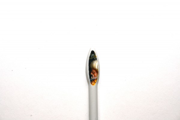 Предлагаем вам своими глазами увидеть процесс создания миниатюрных живописных полотен, проследить технику письма и, заодно, узнать, что художник использует вместо палитры: