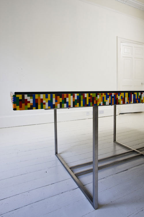 Есть много явлений того, как повсеместно используется знаменитый конструктор лего (мы уже писали об этом в статье «Большие лего»). Представляем стол, изготовленный, по заказу компании «abgc», рекламным агентством «Boys and Girls». Трудно поверить, но этот стол находится зале заседания компании. Дизайн стола включает 23 тысячи деталей конструктора Лего. Толщина многоцветного слоя скреплённых пластмассовых деталей, зажатых между двумя стеклянными панелями, составляет 14 сантиметров.
