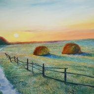 -фактура-совмещение рельефных и гладких мазков (мастихин/кисть);